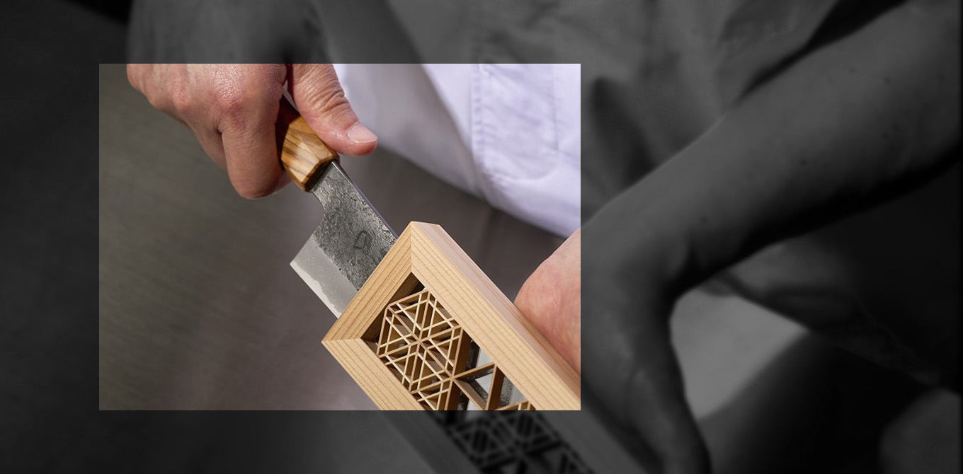 伝統が息づく匠の技、世界初・組子細工の包丁収納用品は高度な技術が必要な組子細工。