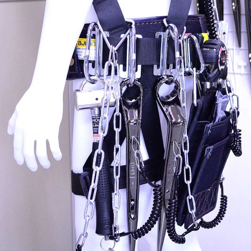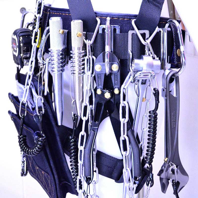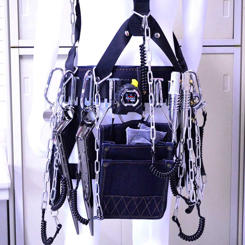 お判りいただけるでしょうか?それにしても職人さんてこんなに重い道具類を付けて作業されてるんですね(凄)