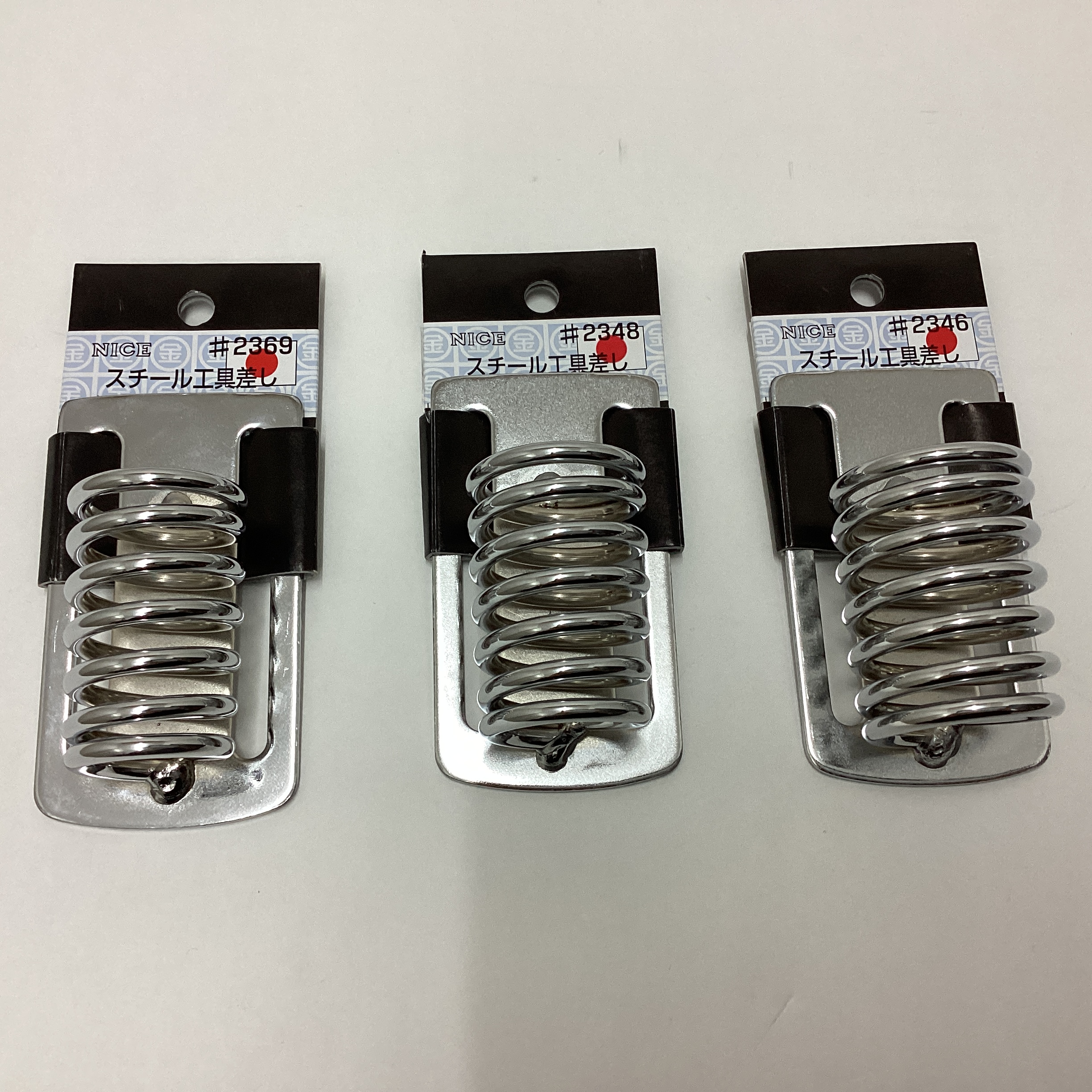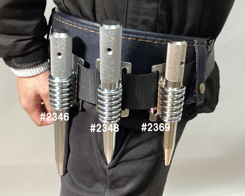 今回紹介の2つの商品は#2369と同じくベルトに固定可能なD環止め2穴タイプとなっており、ホールドしてがっちりと固定させたい方にはお勧めの商品です。ヨセポンチの他に、マーカー、ペンなどを差すことができ、ベルト通しは50㎜と60㎜ベルト兼用となっております。コンパクトで隙間に装着可能なスライドタイプの商品も販売中ですので是非お好みの商品を弊社ECサイトよりご購入下さい。