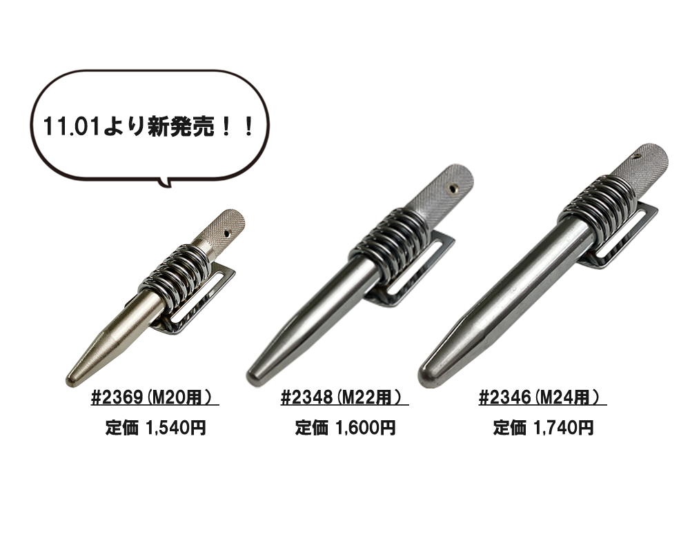 11月1日より販売開始された#2369スチール工具差し(M20用)の他にM22用、M24用のヨセポンチ差しが金井産業から販売されております。