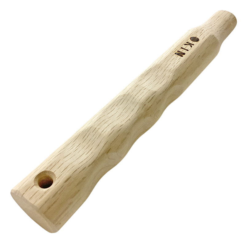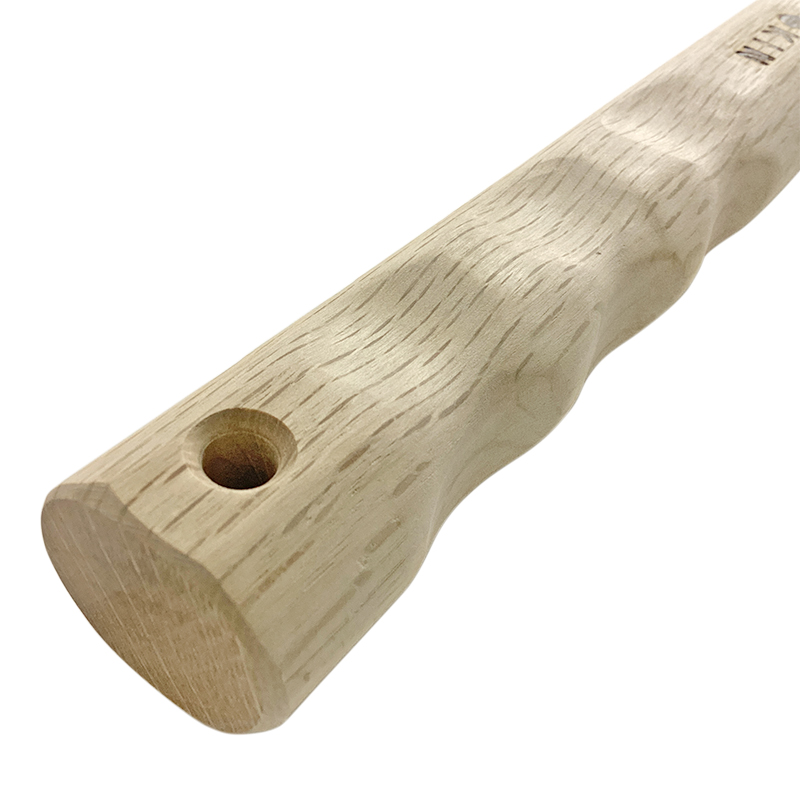 金井産業の「マルキン印 樫・石頭(アシバ)ハンマー柄 250mm 楕円」の ショートは、使いやすいショートサイズの石頭ハンマー用木柄です。手に優しい設計と手に馴染む独特なデザインが特徴で、他にないオリジナルのハンマー柄となっております。ストラップ用の穴も付いており、安全性腰袋にも配慮されています。