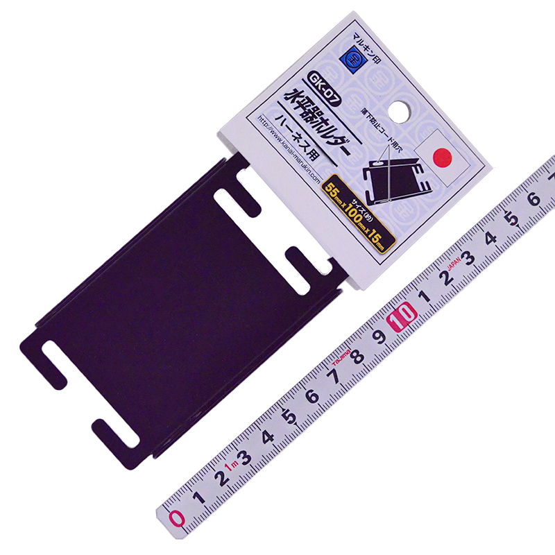 今回ご紹介するのは、金井産業 マルキン印水平器ホルダー GK-07 マットブラックです。マルキン印の水平器ホルダーでは、サビに強いSUS430製(フェライト系ステンレス銅)につや消し塗装を施した薄く軽量なハーネス用の水平器ホルダーです。