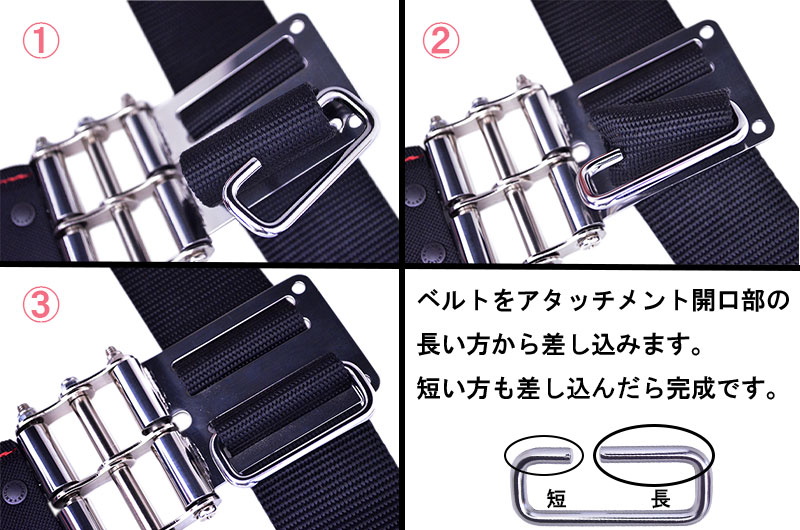 工具の抜き差しをより快適にサポートする長方形リング状の腰道具用アタッチメントなっております。50mm幅対応のベルト通しとベルトの間に装着し、ご使用ください。装着することで、落下防止コードやビッドホルダーを下げることができます。8mmの開口部より、ベルトを外さなくても装着可能です。