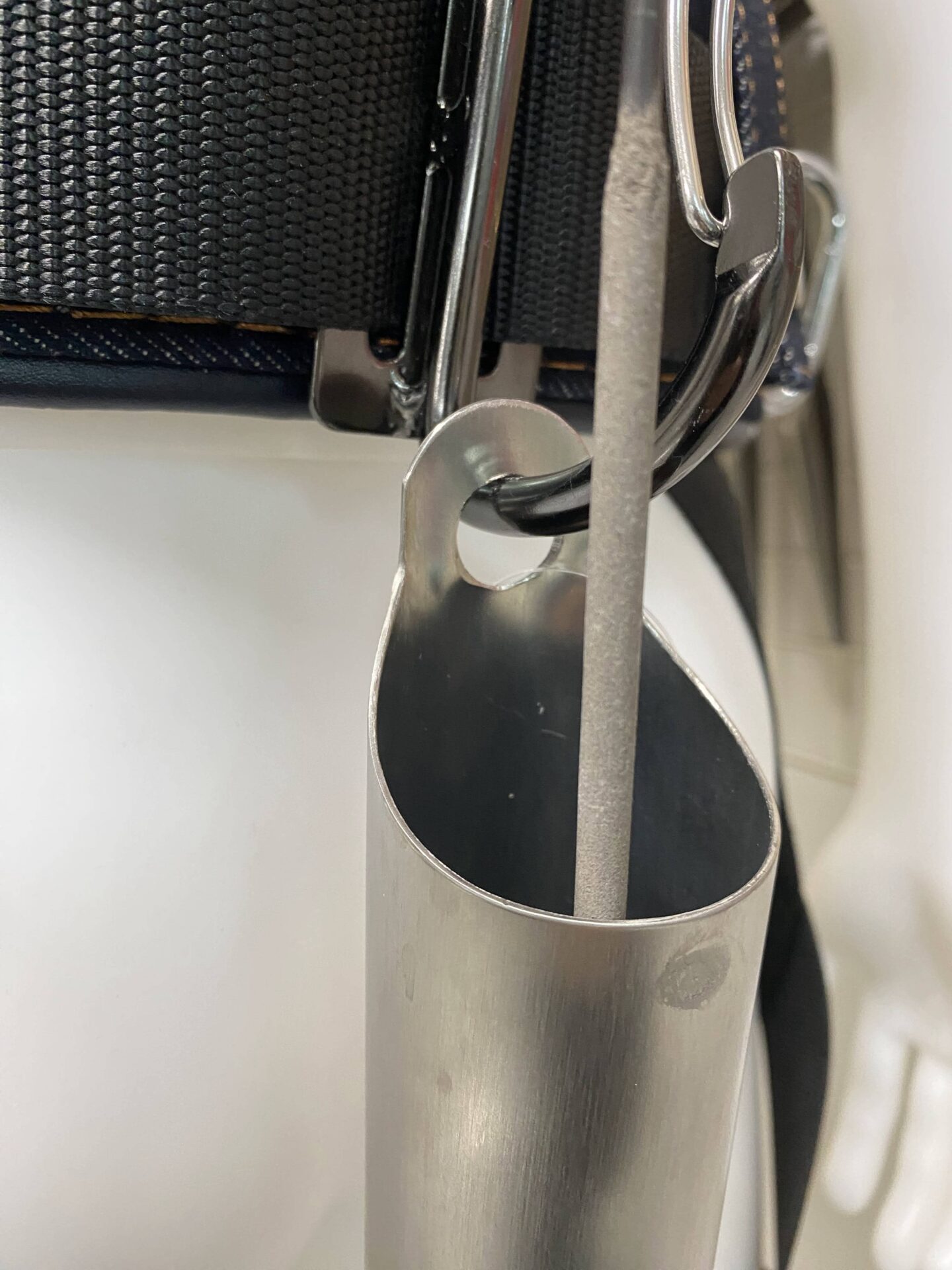 欠点として、穴の周囲もオールステンレスなので、鉄製のカラビナやフックだと