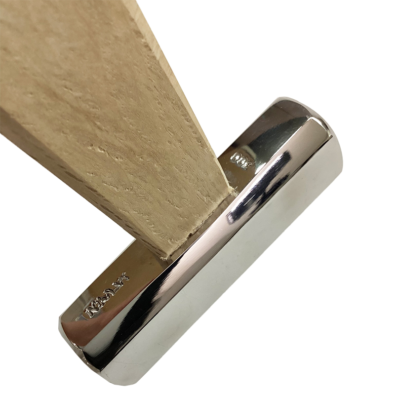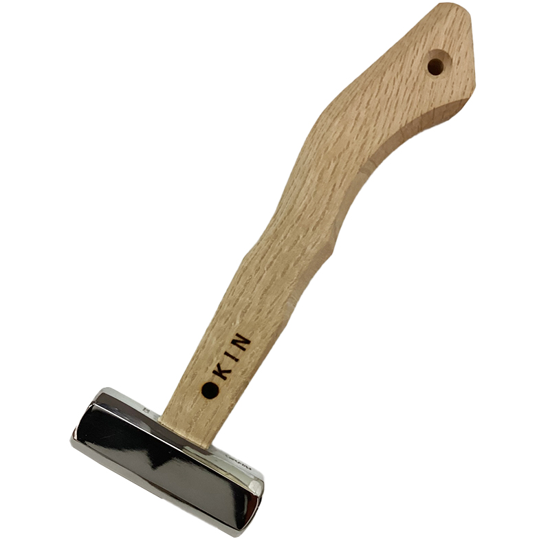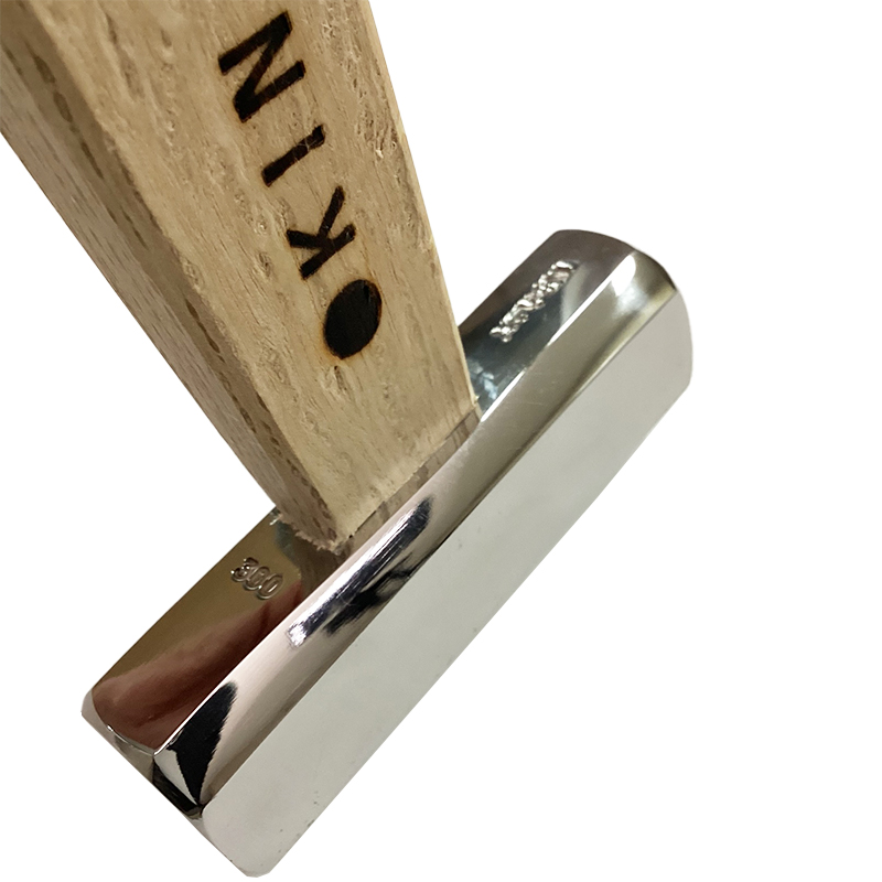 打撃面の片側は平面状で打ち込みやすく、反対側が緩やかな曲面で最後の締め打ちに便利な造り。