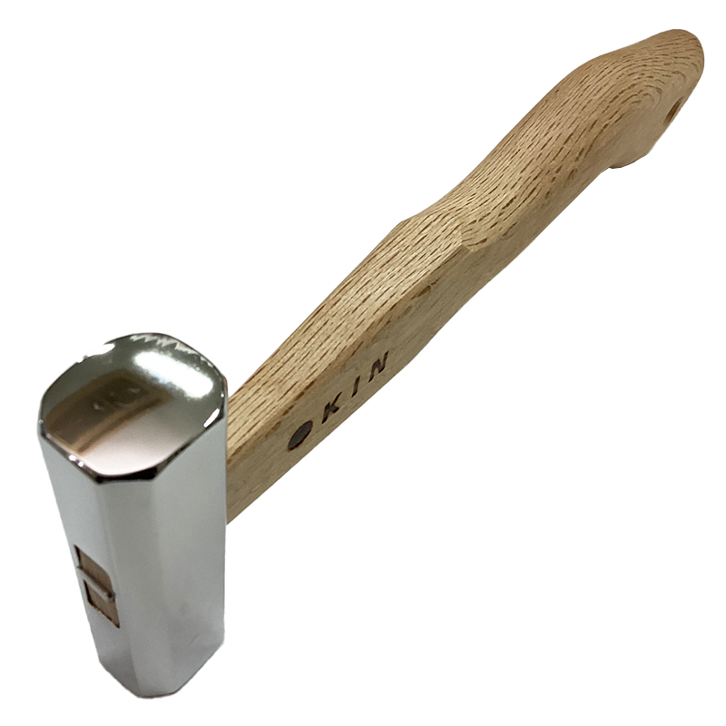 商品仕様 頭 八角玄能(クロームメッキ)  柄 樫・玄能柄 蛇曲 250M/M