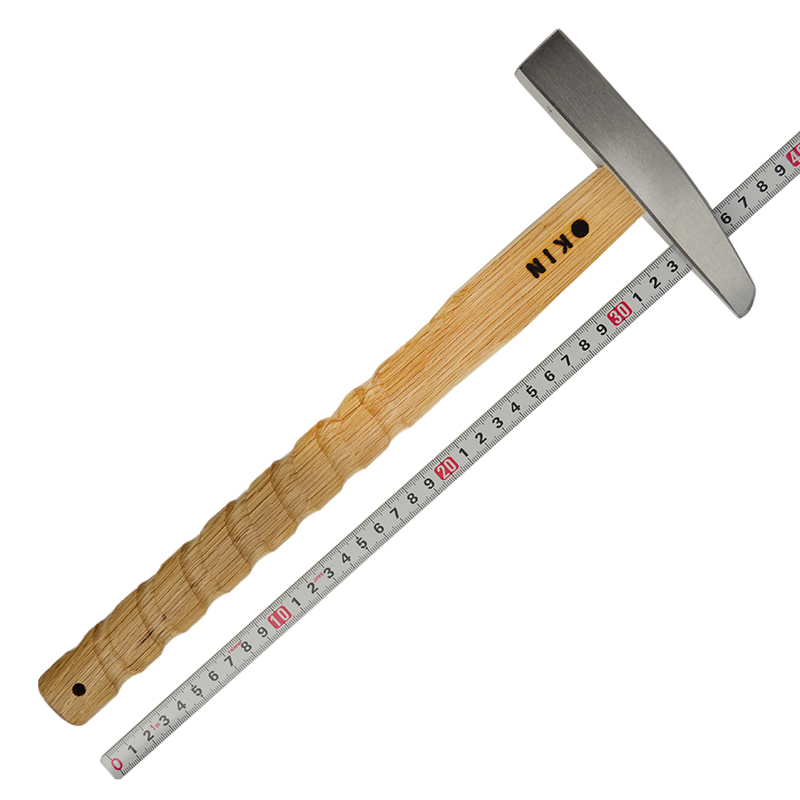 ハゼ起こしやケガキでも使用が可能な台形ヘッド形状のハンマーです。 使い込むほどに馴染む木柄グリップは、マルキン印オリジナル柄(ラセン)を使用してます。 屋根屋ハンマー 頭 大 屋根の施工を想定した板金用ハンマー頭で、ハゼ起こしやケガキでも使用が可能な台形ヘッド形状です。 屋根板金、ダクト、製函、電気工事等、多用途に使用が可能です。 Made in 燕三条 金物の街として世界的にも有名な燕三条地域で製造しております。 ラセン ハンマー柄 350mm (天然木・樫) / 仕込み部 14x26mm ラセン形状が特徴的なマルキン印オリジナルのハンマー柄。 直線的な柄にラセン上の凹凸処理を施しグリップ力を高め快適な打ち心地を実現。 腰袋や工具差しとも相性が良く、収納性も兼ね備えています。 天然木を使用しており使い込めば使い込むほど味が出てきます。 木目や木の節など、天然木ならではの個性をお楽しみください。 Made in 燕三条