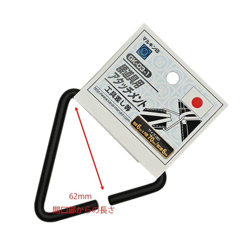 | 商品サイズ | 軸径: 6mm 内径: 70mm 開口部: 6mm 開口部からの長さ: 62mm 重量(約): 55g |