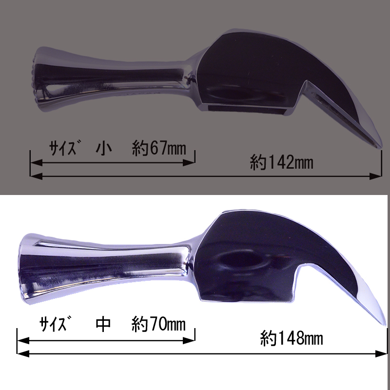 仮枠作業が必要になる様々なシーンで扱いやすいよう頭部はやや長いラッパな形状で、片側が打撃部、もう片側が釘抜き部となっています。