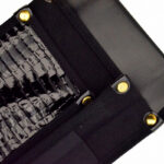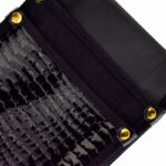 腰袋の前面を光沢感のある黒鰐柄にした、 帆布製の腰袋です。工具入れとしてご使用ください。 内側ポケット付です。腰袋外側底面が補強されています。 ベルト通し部分にヨレ止め板を内蔵。さらにベルト通し部分切込により、 Y型ハーネスにも対応しています。 ポケットは奥の段が厚み約40mm、手前の段が厚み約25mm 便利な内側ポケット付で、様々な工具を収納可能 ベルト通しは50mm / 60mmの作業用ベルトに対応。 腰に装着することで、手元でスムーズに工具の収納や取り出しができ、 作業効率向上に繋がる職人の必需品です。 [製品の特徴] ・小物の収納に便利な内側2列ポケット。 ・左右側面に細長い工具やペン等を差すのに便利な小ポケット付き ・Y型ハーネス対応の背面切れ込み巾60ミリ。 ・ベルト通しの内側にヨレ防止の為、板材を挟んであります。 ・負荷がかかりやすい箇所を金色のリベットで補強し耐久性を向上。 ・傷みやすい底面を補強 ・日本製