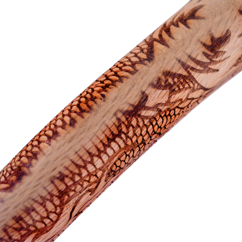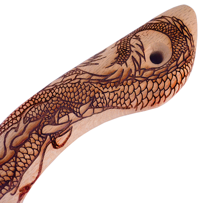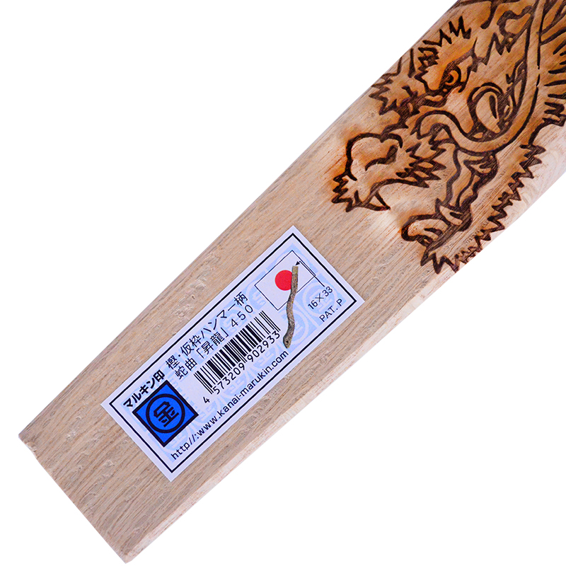 マルキン印オリジナルの蛇曲ハンマー柄に昇龍の彫込焼付加工を施したインパクトのある木柄。