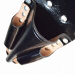 板金鋏、ツカミ箸等を 収納するのに便利な、黒皮工具差し 右利き、左利き兼用の左右対称なデザインです。 ベルト通しは50mm / 60mmの作業用ベルトに対応。 腰に装着することで、手元でスムーズに工具の収納や取り出しができ、 作業効率向上に繋がる職人の必需品です。 [装着感へのこだわり] シンプルかつコンパクトで扱いやすいデザインの中に装着感も追求し、 ストレスの無い装着感と見映えのするシルエットを実現するため、 皮の背部に体の形を想定した緩やかなカーブを施しています。 [高級感のある丈夫な牛黒床皮] 素材は、光沢感のある牛黒床皮を使用。 しっかりとした硬さと厚みのある皮質で、 使い込むほどに皮製品特有の味わいを楽しむことができます。 皮が伸びても刃先が出ない3ヶ所丸鋲留めと、 各部をリベットで補強し優れた耐久性も兼ね備えています。 日本製