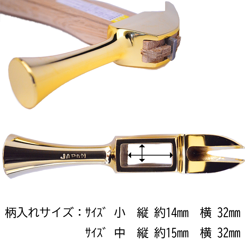商品仕様 頭 金(ゴールドメッキ) 止無 中 柄 樫・仮枠ハンマー柄 角蛇曲 450M/M