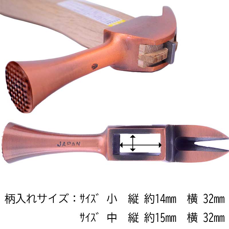 商品仕様 頭 銅(ブロンズメッキ) 止付 中 柄 樫・仮枠ハンマー柄 真直 350M/M