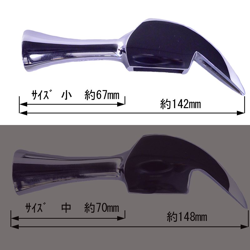 仮枠作業が必要になる様々なシーンで扱いやすいよう頭部はやや長いラッパな形状で、片側が打撃部、もう片側が釘抜き部となっています。