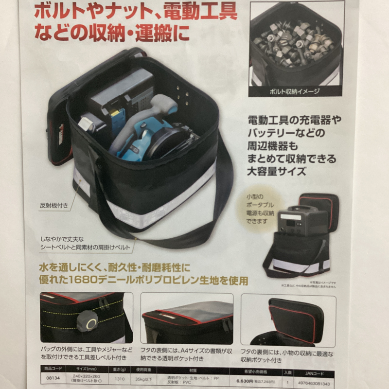MUSTTOOL(イチネンアクセス)反射板付マルチボルトバッグ8134 02 – 腰袋・工具差し及びケース・カラビナ関係02-06-バケツ・バッグ02-06-バケツ・バッグ_MUSTTOOL(イチネンアクセス) 製品説明 仕様 ※商品はサイズ等に多少差異がある場合があります。※ご使用のモニター環境により、実際の商品との色合いが異なって見える場合があります。 ※製品の仕様・パッケージ等は予告なく変更する場合がありますので、ご了承ください。 メーカー MUSTTOOL(イチネンアクセス) 商品仕様 8134