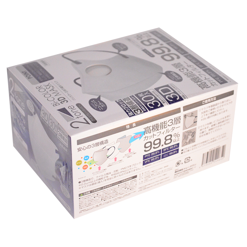 トレードワン ハイカラー立体不織布マスク 60144 アイスグレーXネイビー