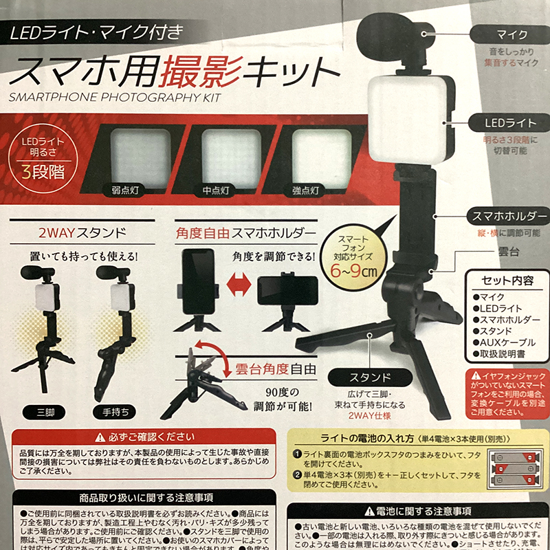 ハックスマホ用撮影キットHAC3973 22 – 家具・家電・生活雑貨関係22-01-携帯(スマホ)関連22-01-携帯(スマホ)関連_ハック 製品説明 仕様 ※商品はサイズ等に多少差異がある場合があります。※ご使用のモニター環境により、実際の商品との色合いが異なって見える場合があります。 ※製品の仕様・パッケージ等は予告なく変更する場合がありますので、ご了承ください。 商品仕様 HAC3973 メーカー ハック