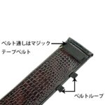 前面を光沢感のある茶鰐柄(ワニ革柄)にした胴当てベルト。