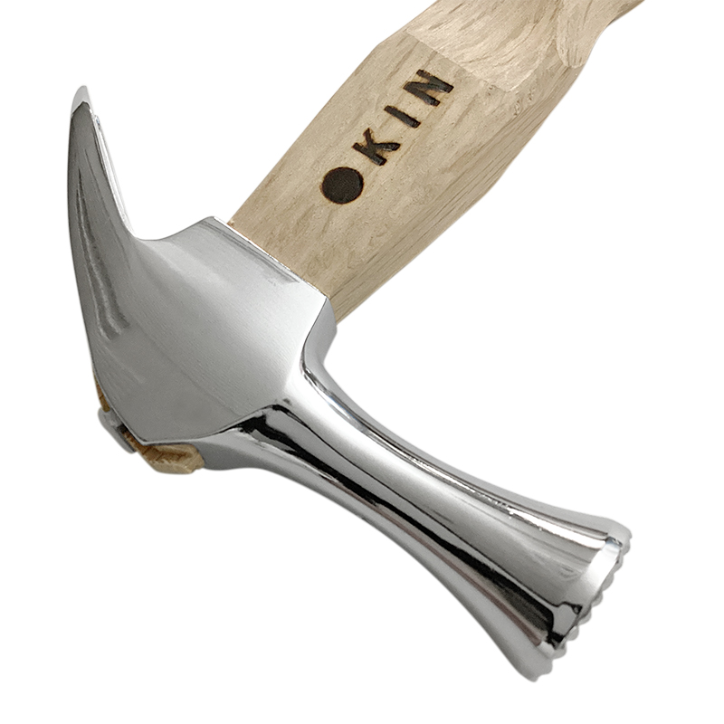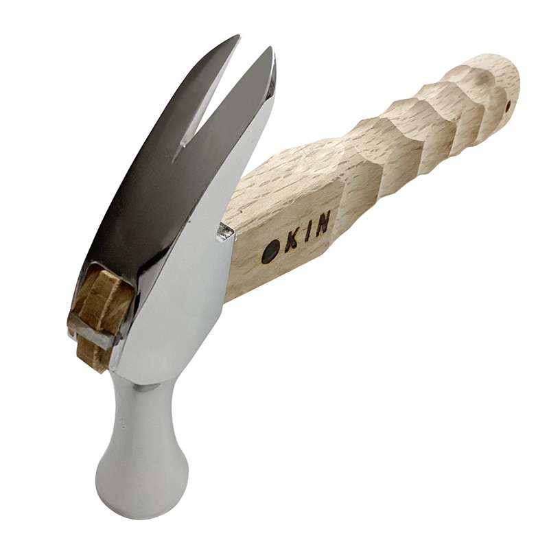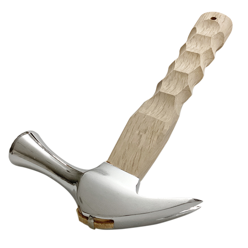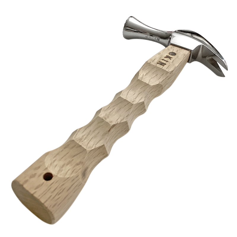 柄に名栗加工を施した仮枠ショートハンマーが登場! マルキン印オリジナルの木柄のショートタイプで、 柄が短くなる分軽く、腰袋にもコンパクトに収納が可能。 際立つデザインはもちろん、機能性も兼ね備えた他にはないハンマーです。 仮枠ハンマー 頭 (止付) 小 建設工事で型枠を組み立てる仮枠作業で使われる炭素鋼製の頭で、 コンクリートを流し込む型枠や一時的な構造物の施工や撤去に適しています。打撃面は滑り止めとなる格子状の溝があり、釘頭をしっかりとらえることができます。 樫・ ハンマー柄 名栗 250mmショート (天然木・樫) / 仕込み部 14x26mm 日本の伝統的な木工技術の一つで、木材の表面に独特の凸凹の削り後を施す名栗加工を採用したマルキン印オリジナルのハンマー柄。 木の表面が立体的で豊かな表情を持つデザインとなっています。 独特の凸凹は滑り止めとしても機能し、見た目だけではなく実用性も兼ね備えています。 天然木を使用しており使い込めば使い込むほど味が出てきます。 木目や木の節など、天然木ならではの個性をお楽しみください。 Made in 燕三条 金物の街として世界的にも有名な燕三条地域で製造しております。
