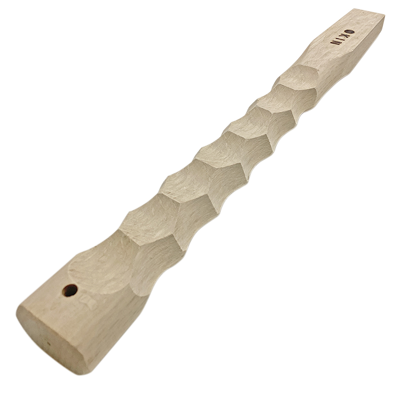 名栗加工を施したハンマー柄が登場! 際立つデザインはもちろん、機能性も兼ね備えた他にはないハンマー柄です。 日本の伝統的な木工技術の一つで、木材の表面に独特の凸凹の削り後を施す名栗加工を採用したマルキン印オリジナルのハンマー柄。 木の表面が立体的で豊かな表情を持つデザインとなっています。 独特の凸凹は滑り止めとしても機能し、見た目だけではなく実用性も兼ね備えています。 天然木を使用しており使い込めば使い込むほど味が出てきます。 木目や木の節など、天然木ならではの個性をお楽しみください。   Made in 燕三条 金物の街として世界的にも有名な燕三条地域で製造しております。