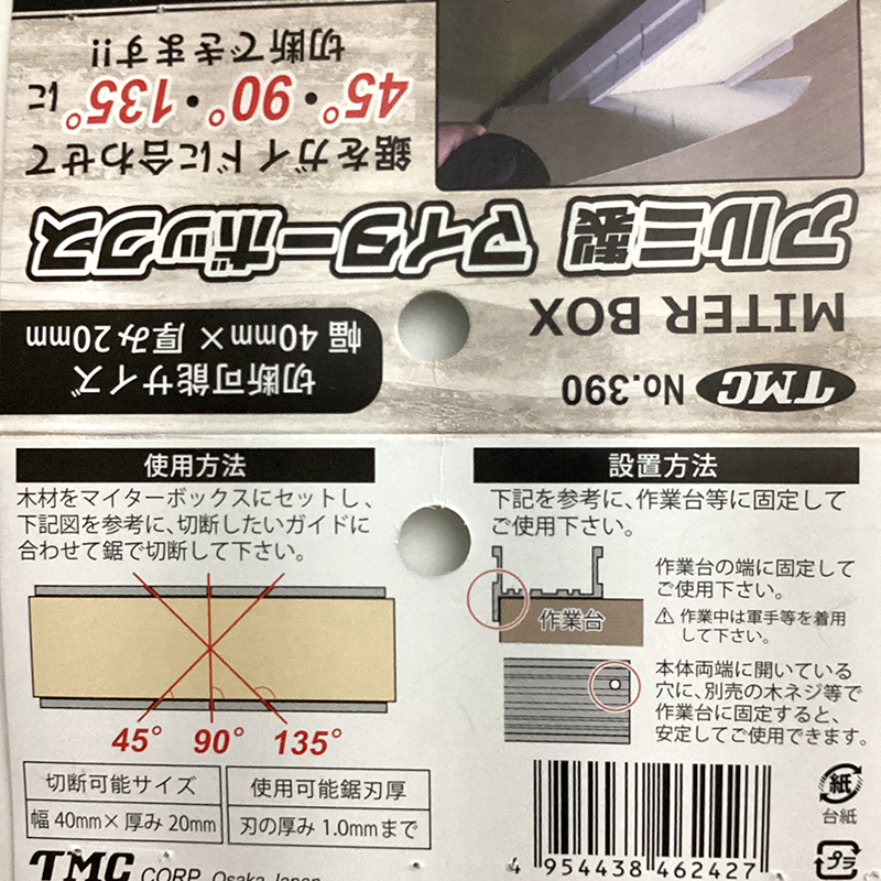 TMC(豊光)アルミ製 マイターボックスNO.390 08-07-作業補助用品08-07-作業補助用品_TMC(豊光) 製品説明 仕様 ※商品はサイズ等に多少差異がある場合があります。※ご使用のモニター環境により、実際の商品との色合いが異なって見える場合があります。 ※製品の仕様・パッケージ等は予告なく変更する場合がありますので、ご了承ください。 規格 NO.390 メーカー TMC(豊光)