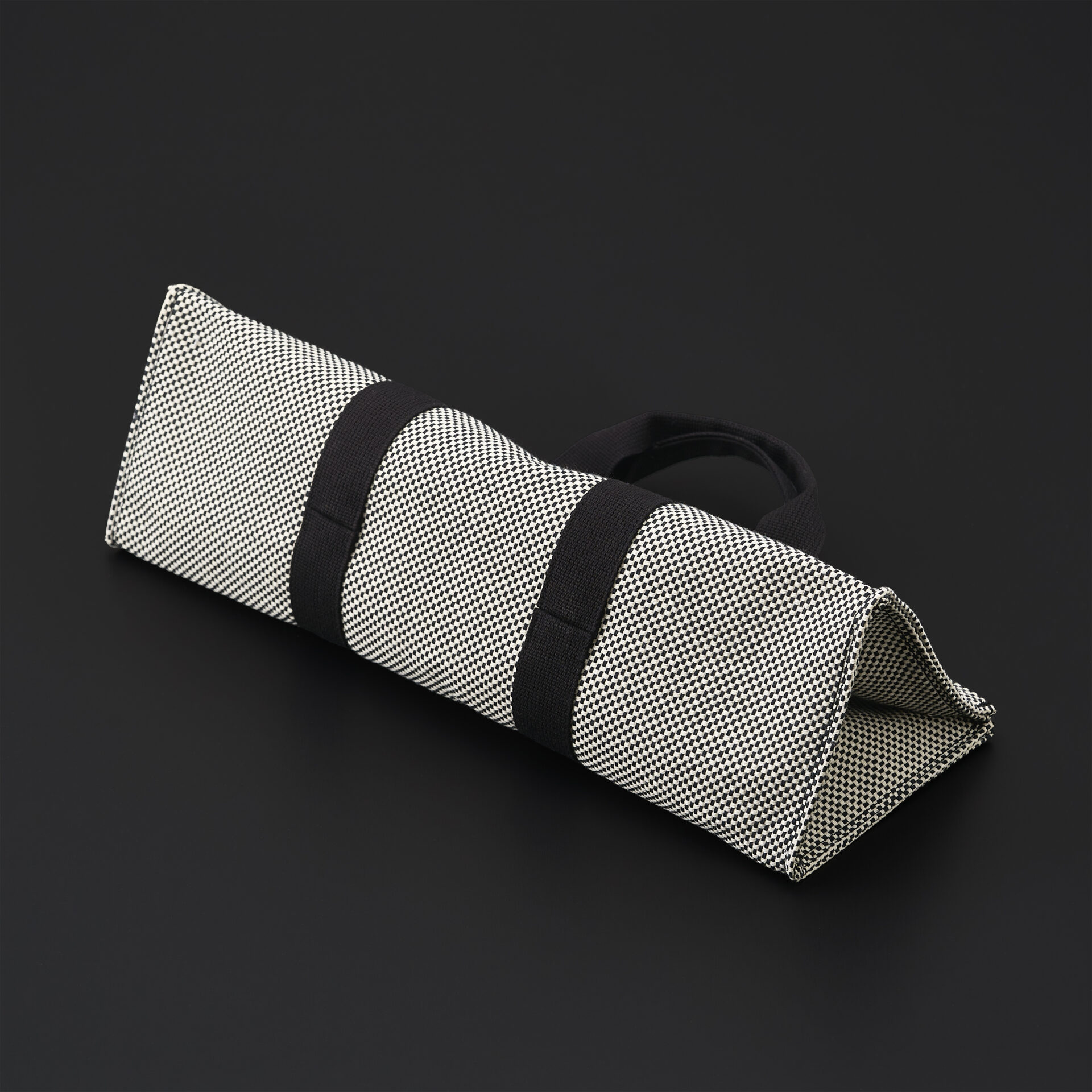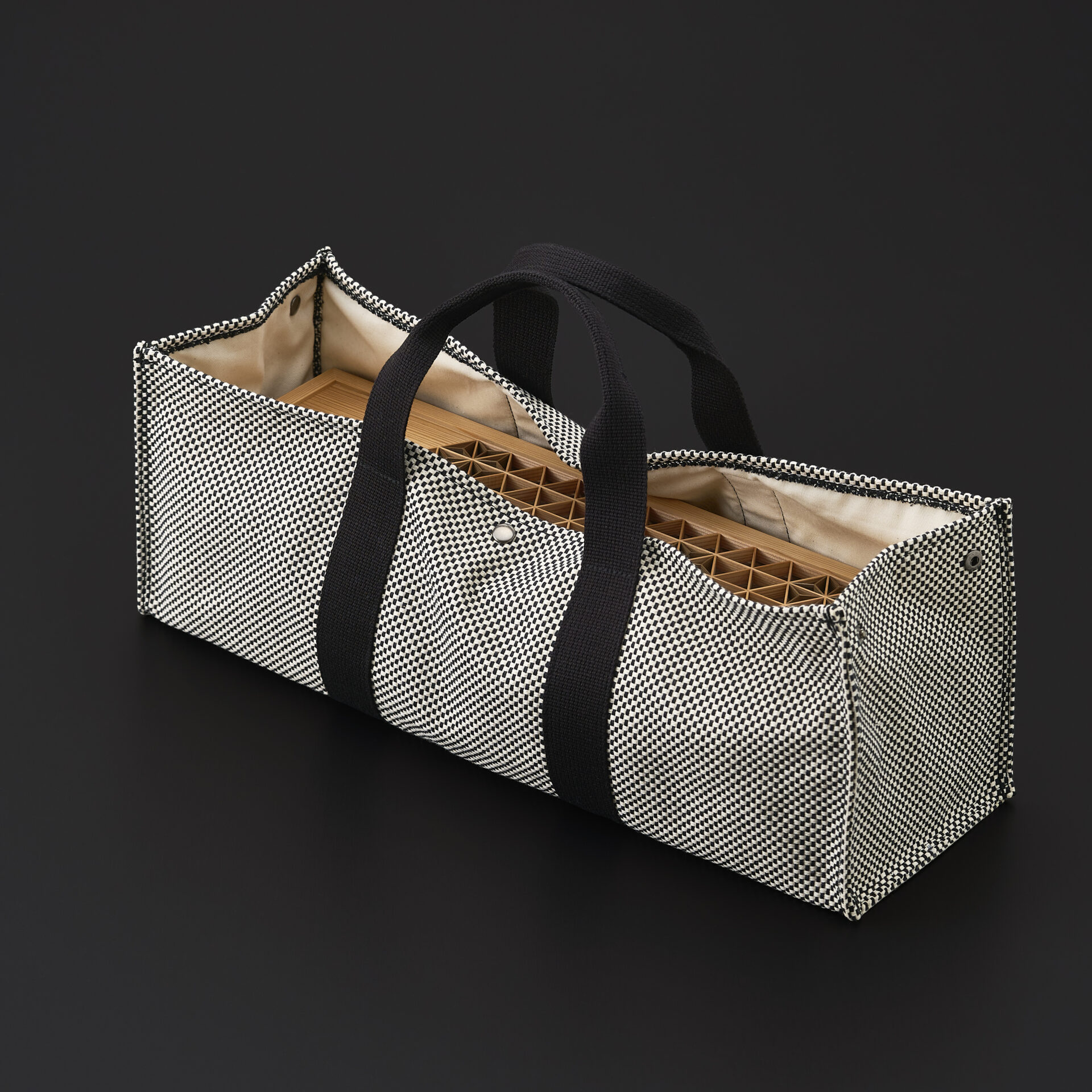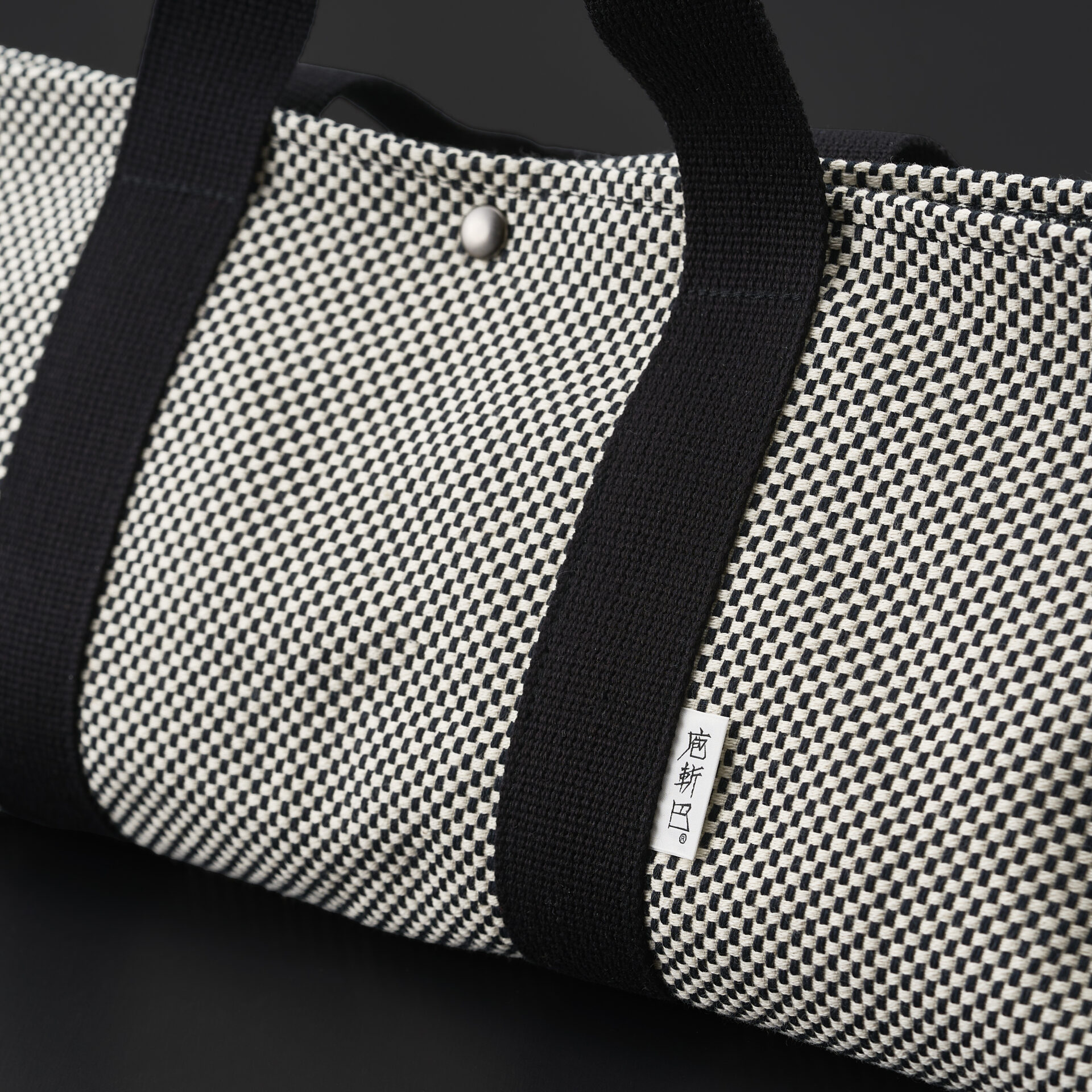 日本の伝統技法「刺し子織」から生まれた生地を用い、丹念に仕立てた包丁用手提げです。