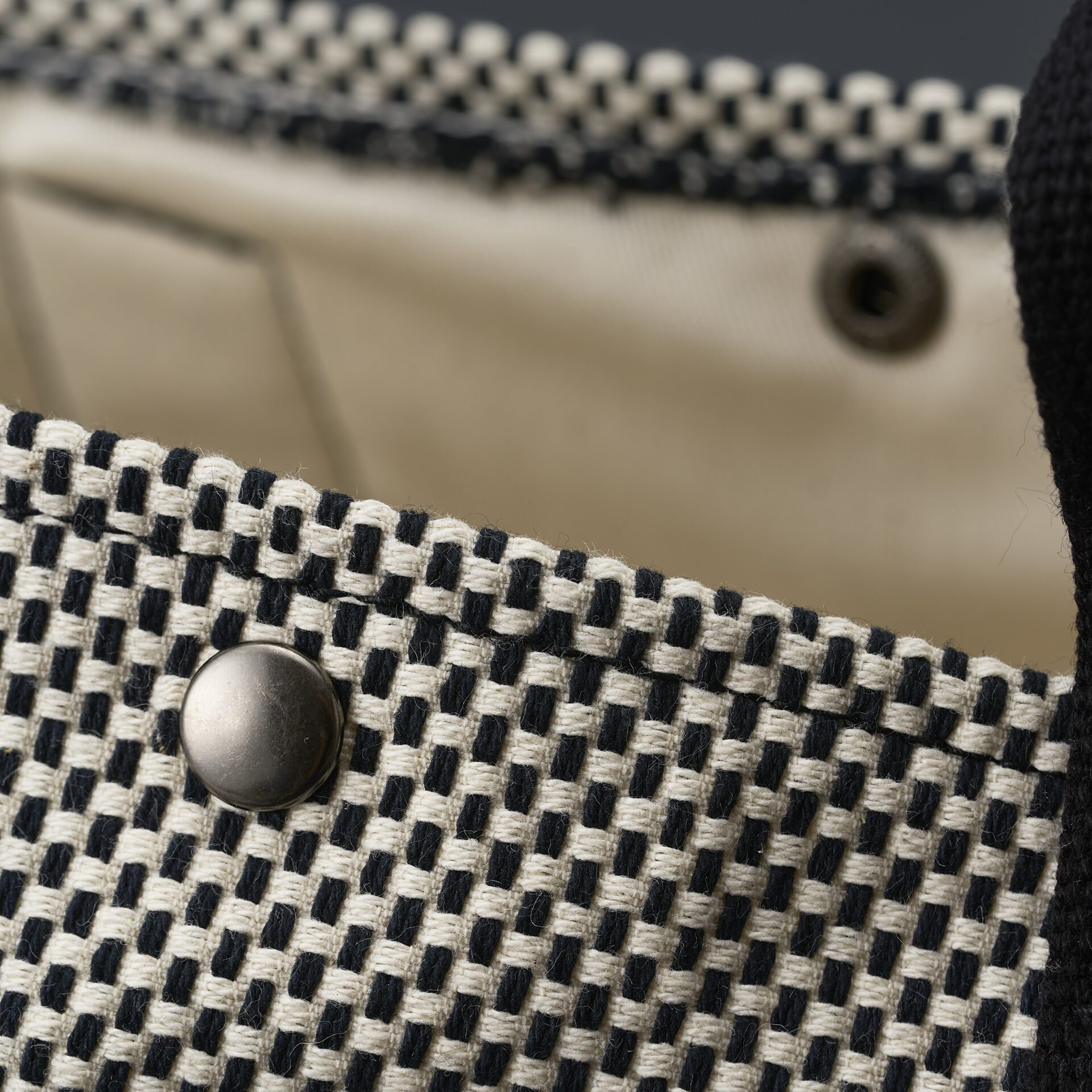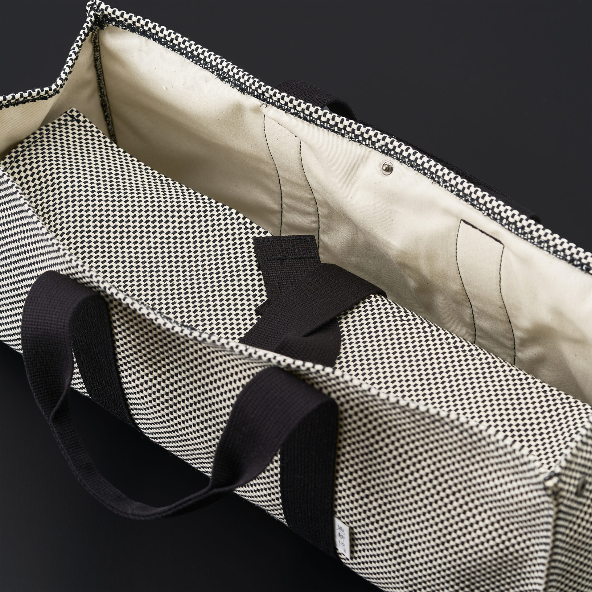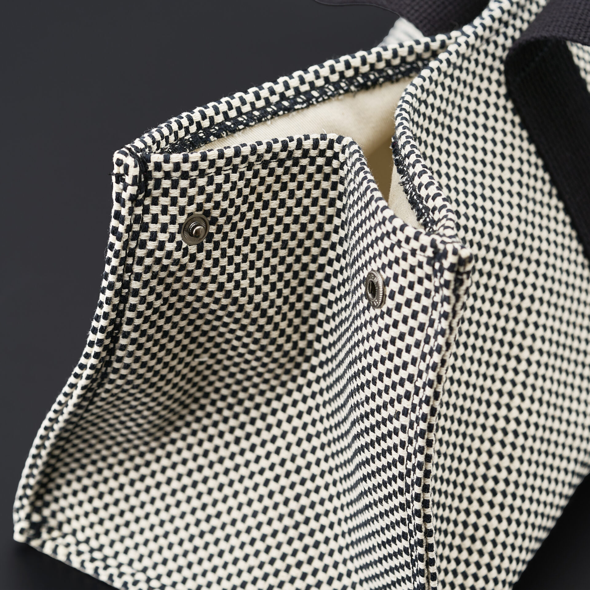 日本の伝統技法「刺し子織」から生まれた生地を用い、丹念に仕立てた包丁用手提げです。