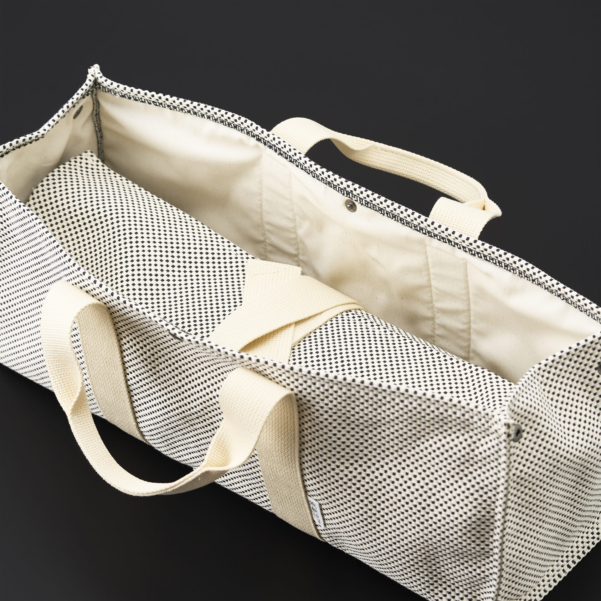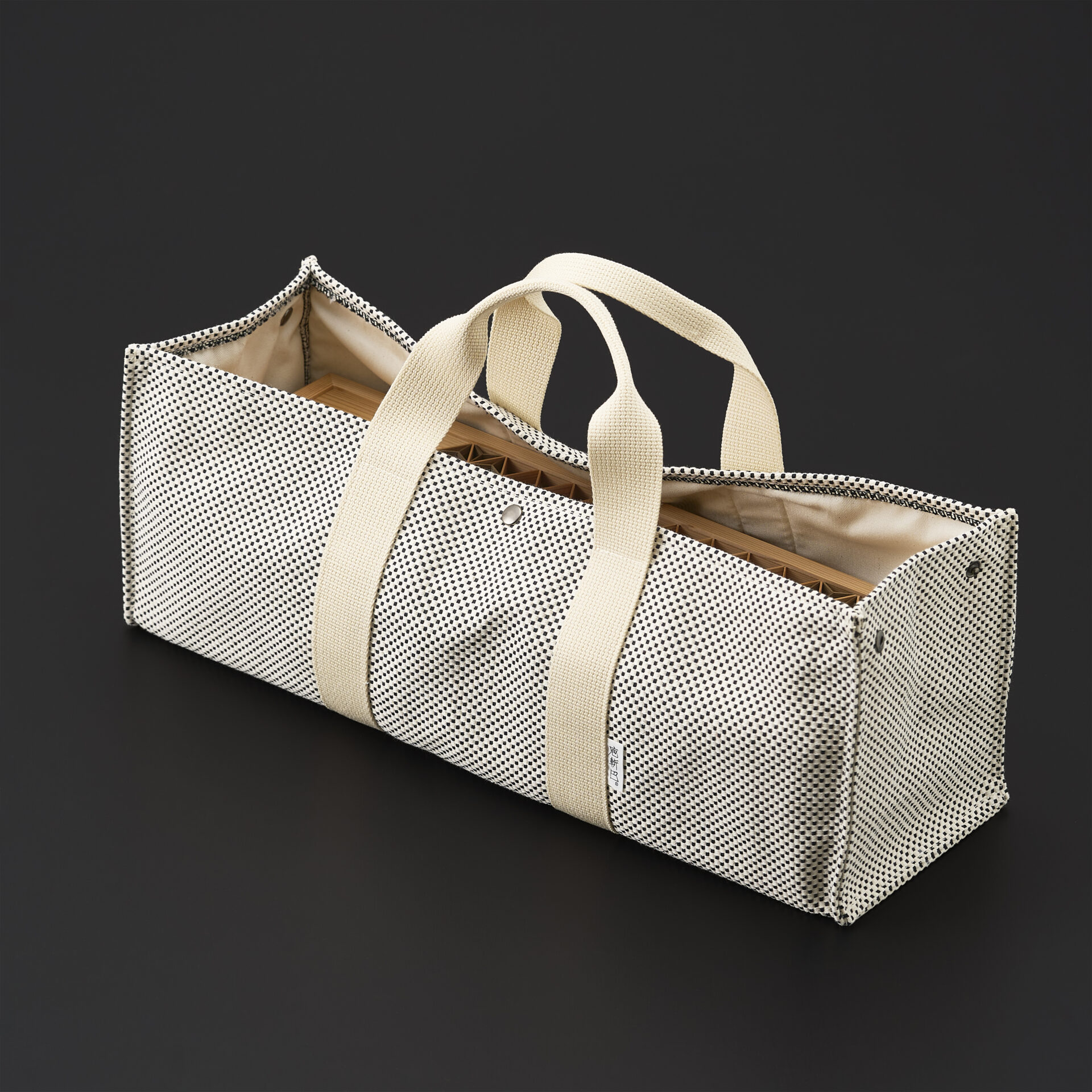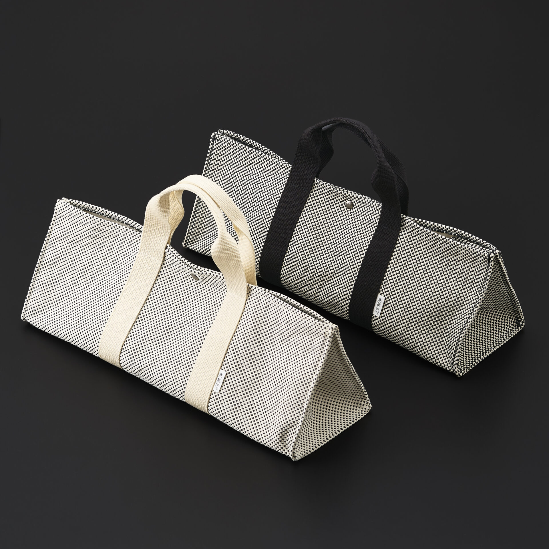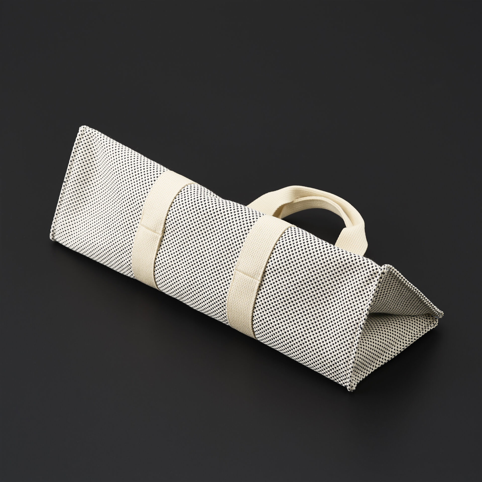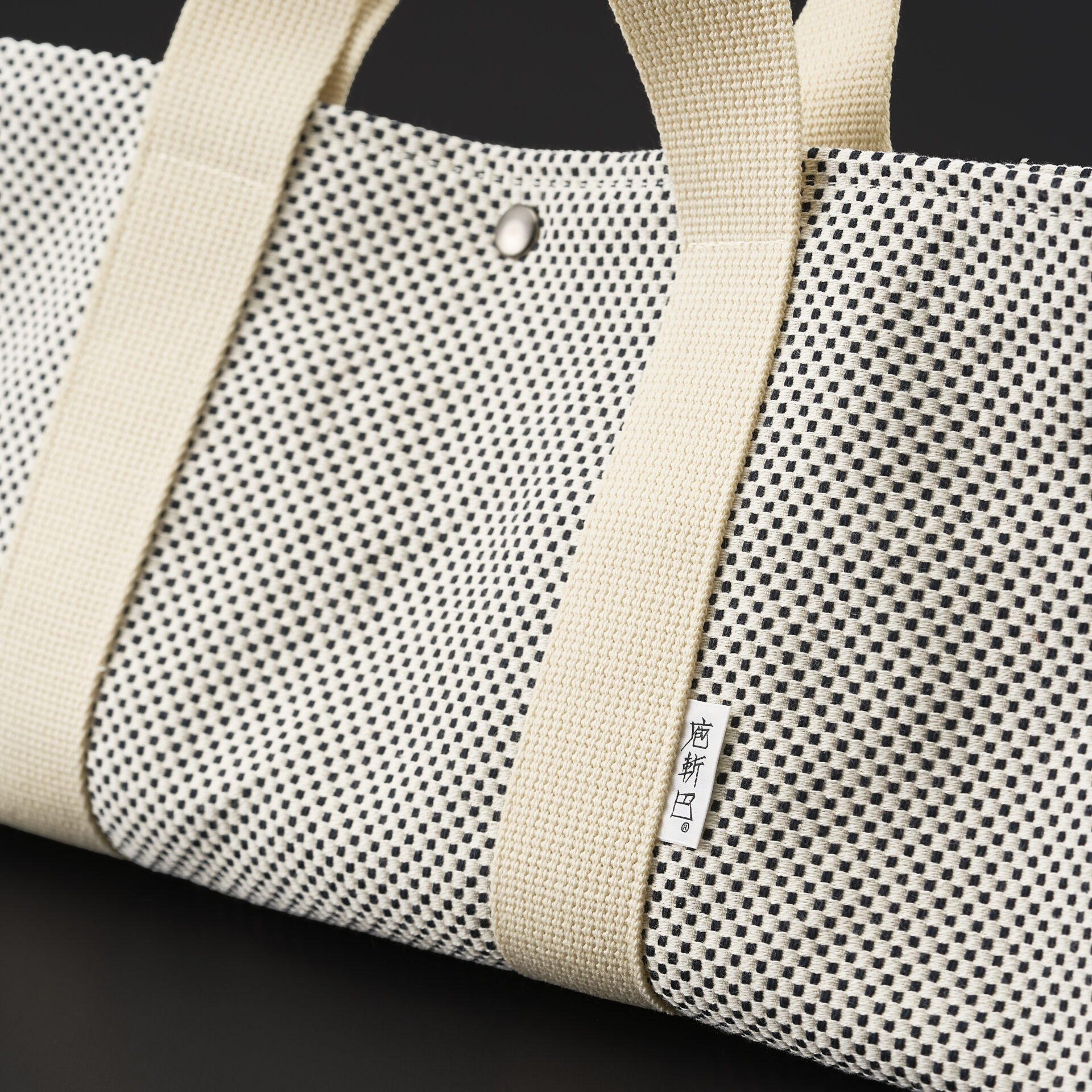 日本の伝統技法「刺し子織」から生まれた生地を用い、丹念に仕立てた包丁用手提げです。